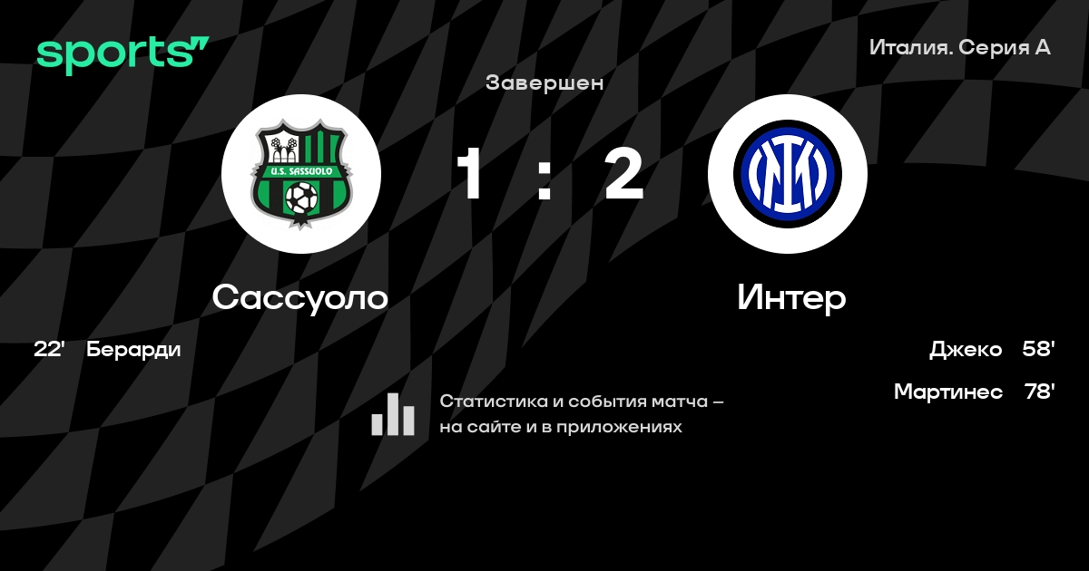 Сассуоло – Интер: Интер забивает в 4 последних матчах против этого соперника