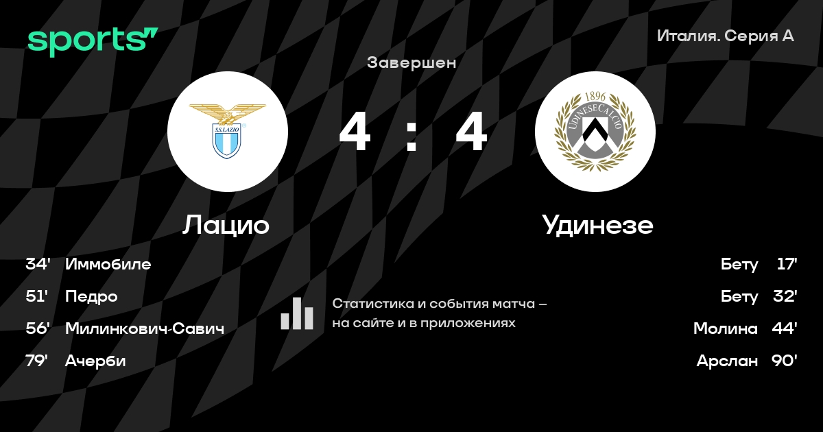 «Лацио» и «Удинезе» сыграли 4:4. Это первая такая ничья в Серии А за 9 лет