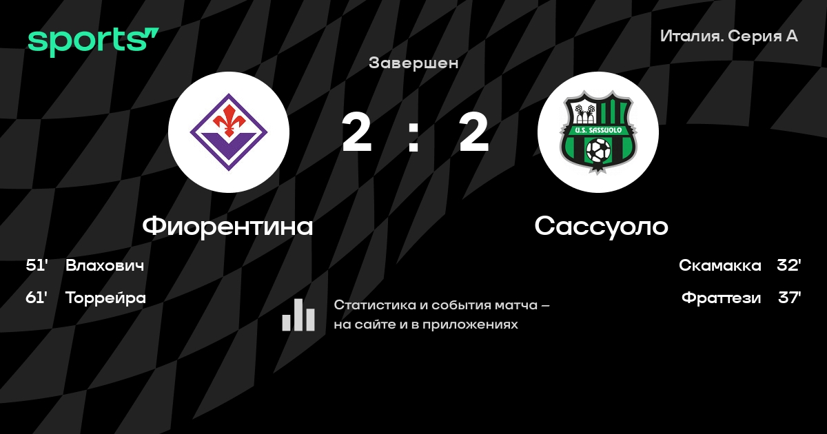 Фиорентина – Сассуоло: Сассуоло забивает в 7 последних матчах против этого соперника