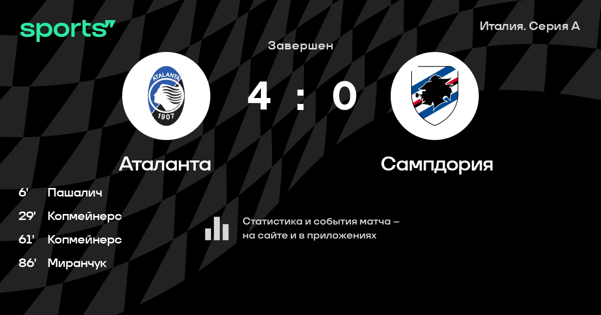 Аталанта – Сампдория: Аталанта забивает в 4 последних матчах против этого соперника