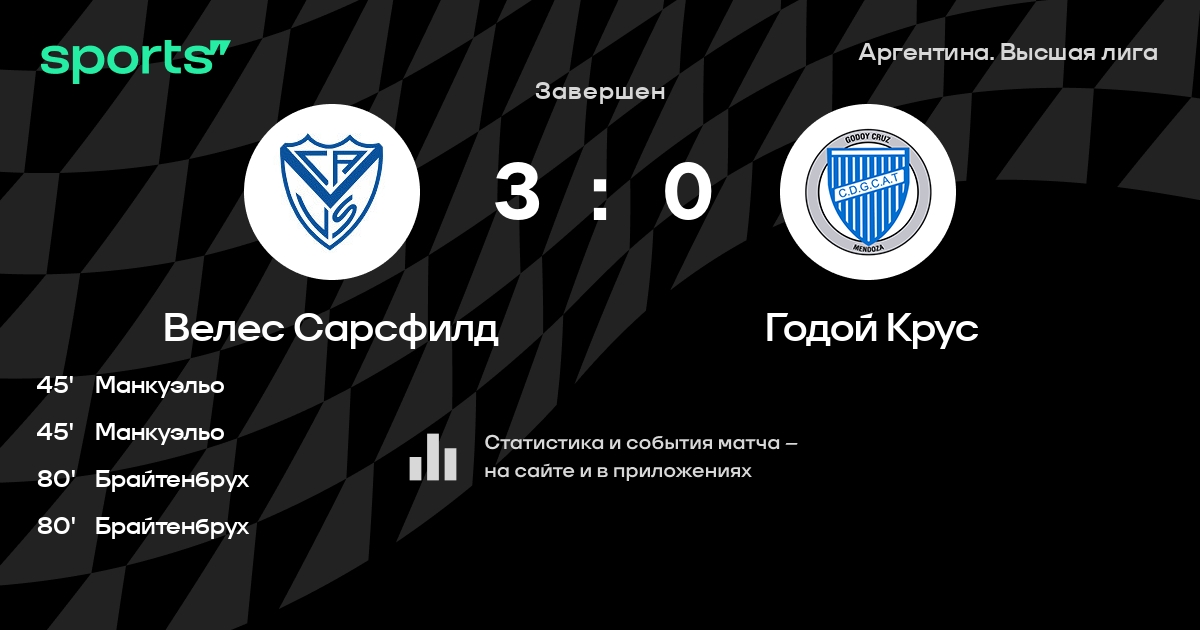 Велес Сарсфилд – Годой Крус: Велес Сарсфилд забивает в 3 последних матчах против этого соперника