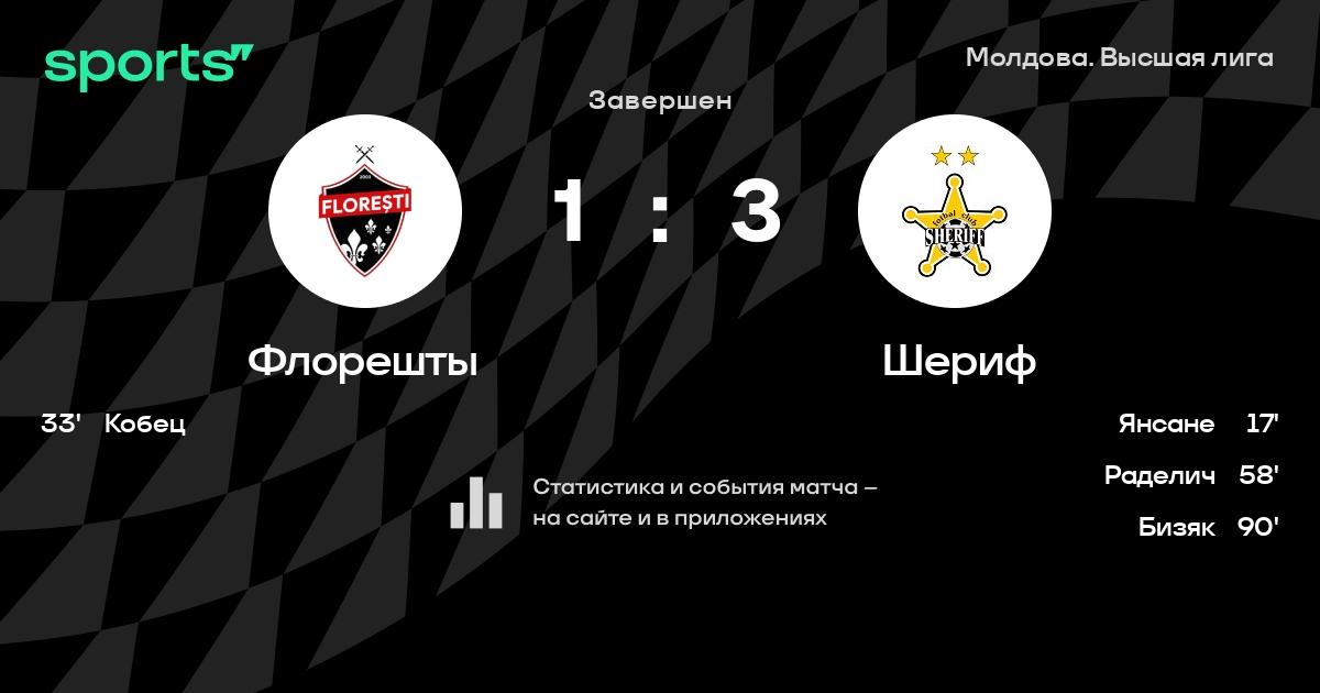 Флорешты – Шериф: Шериф побеждает в 4 последних очных матчах