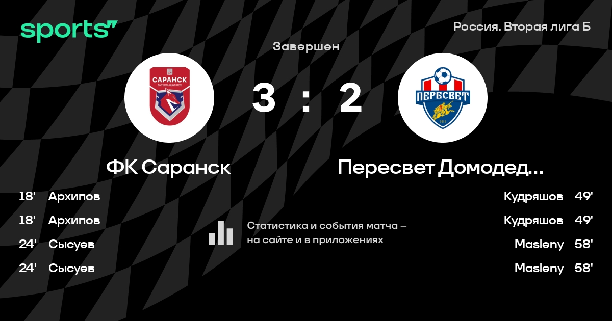 Результат прошлой игры в турнире «Россия. Олимп-ФНЛ-2»: Родина – ФК Саранск 3:1. После 16 туров ФК Саранск набирает 32 очков и занимает 3 место в турнире. Лучший бомбардир команды – Иван Хлебородов: он забил 6 в 7 матчах. В 4 последних матчах в турнире «Россия. Олимп-ФНЛ-2» ФК Саранск обязательно забивает. ФК Саранск пропускает в 3 последних матчах в турнире «Россия. Олимп-ФНЛ-2». В последних 5 играх ФК Саранск забивает 11 голов. В последних 5 играх ФК Саранск пропускает 5 голов.