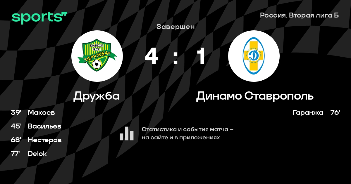 Дружба – Динамо Ставрополь: Динамо Ставрополь забивает в 6 последних матчах против этого соперника