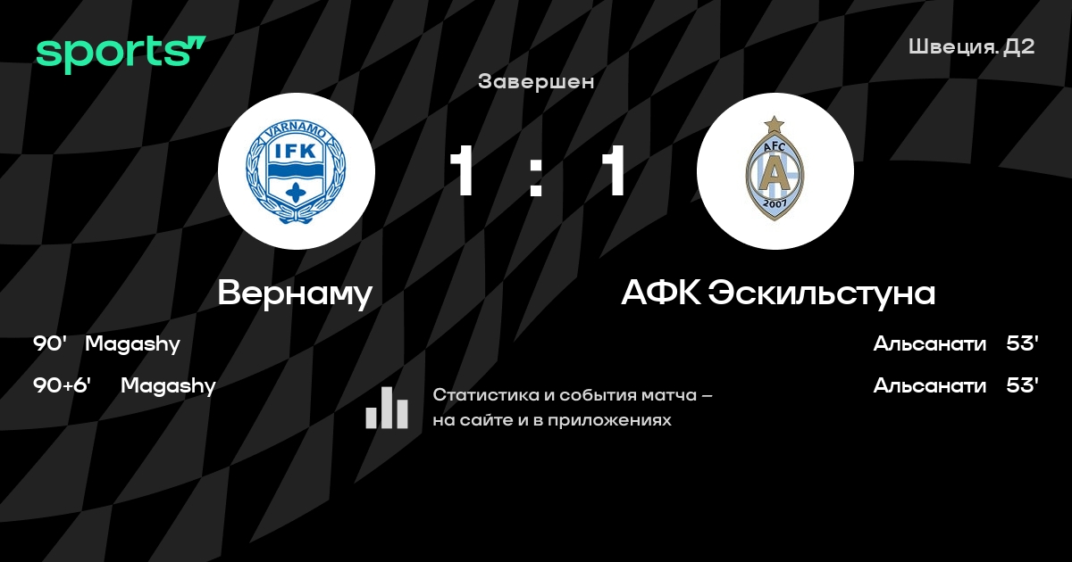 Войтехович - Эрикссон, Winsth, Vilar Estevão Jeronimo - Oliveira do Nascimento, Kenndal, Albin Sundgren, Удденес, Magashy, Юханссон - BecirovicЗапасные: Eriksson, де Врис, Larsson, Dzabic, Erick, Vindehall, Стивенс