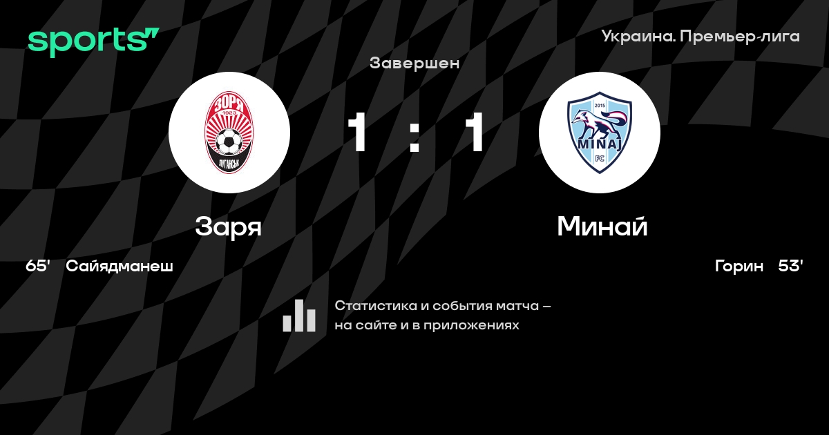 Заря – Минай: Заря побеждает в 3 последних очных матчах в турнире «Украина. Премьер-лига»
