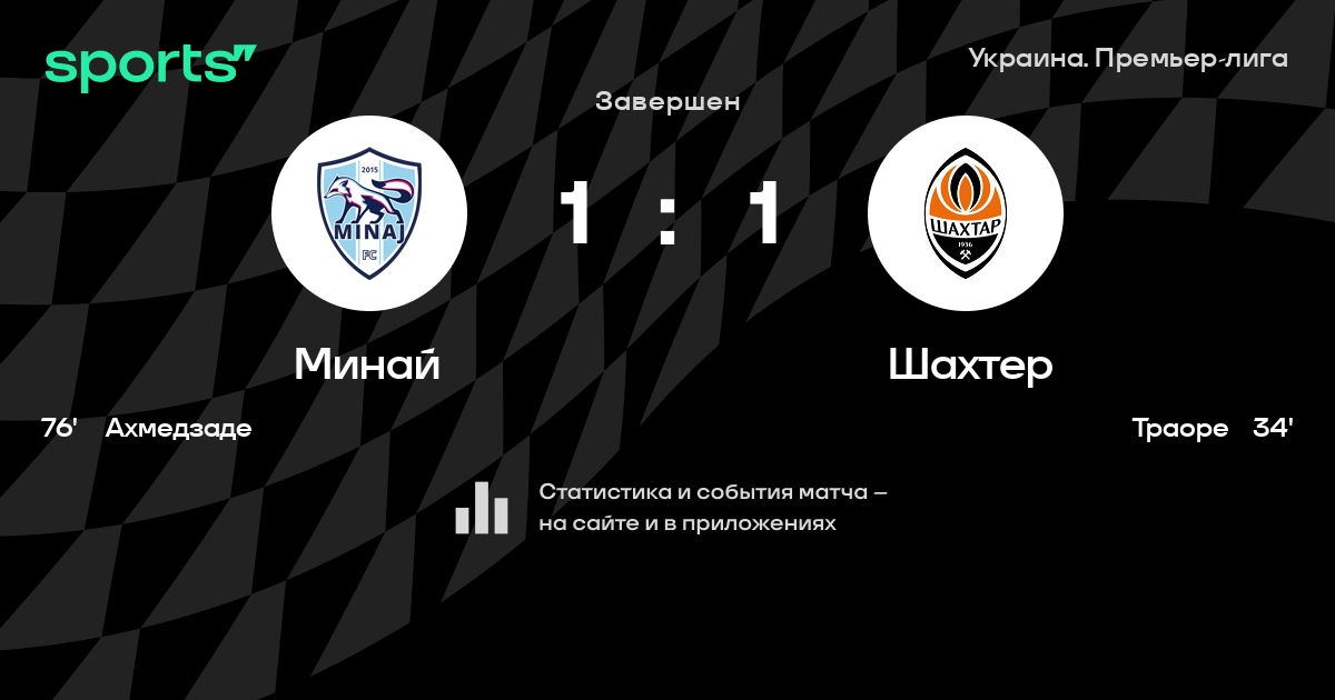 Минай – Шахтер: Шахтер побеждает в 3 последних очных матчах в турнире «Украина. Премьер-лига»