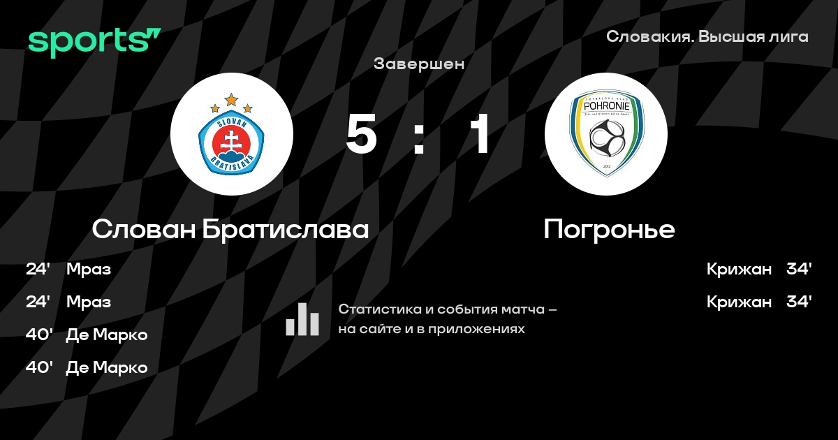 Слован Братислава – Погронье: Слован Братислава забивает в 8 последних матчах против этого соперника