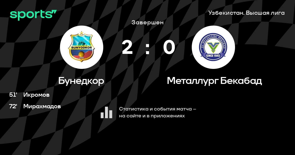 Бунедкор – Металлург Бекабад: Бунедкор не проигрывает в 6 из 8 последних матчей против этого соперника
