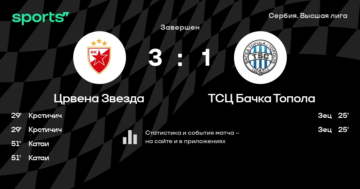 Црвена Звезда – Бачка Топола: Црвена Звезда побеждает в 3 последних очных матчах дома