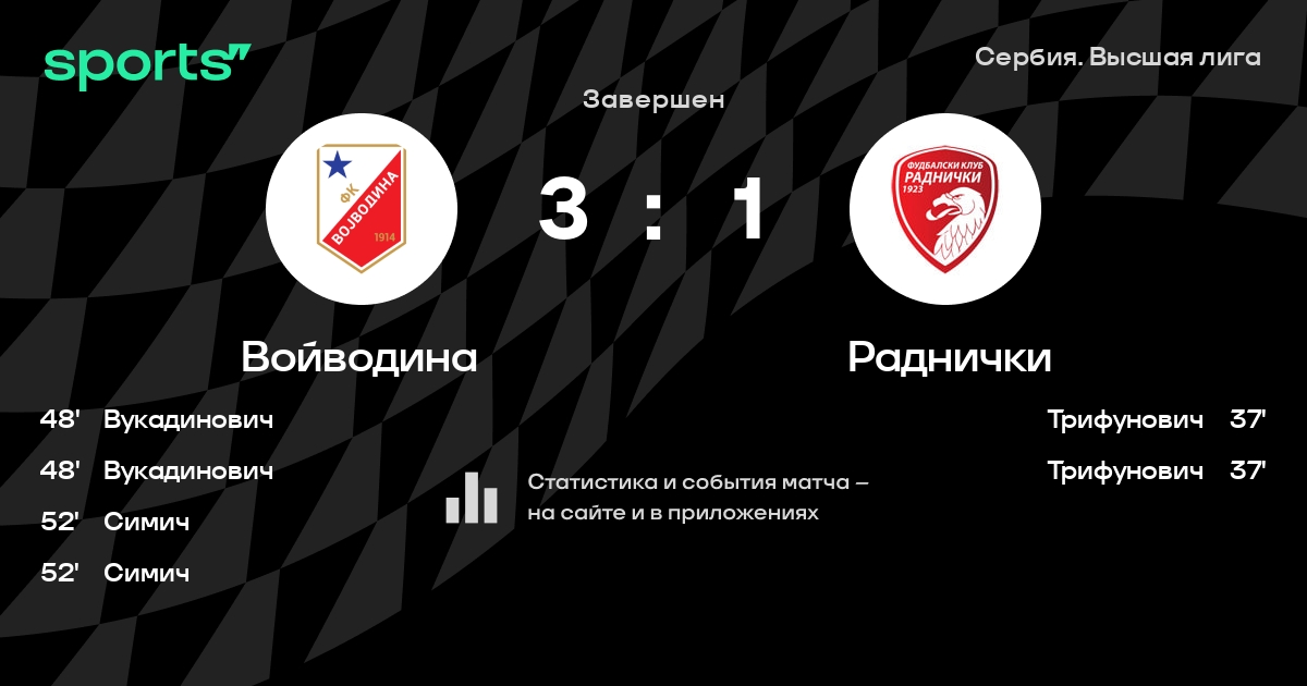 Войводина – Раднички: Раднички забивает в 5 последних матчах против этого соперника