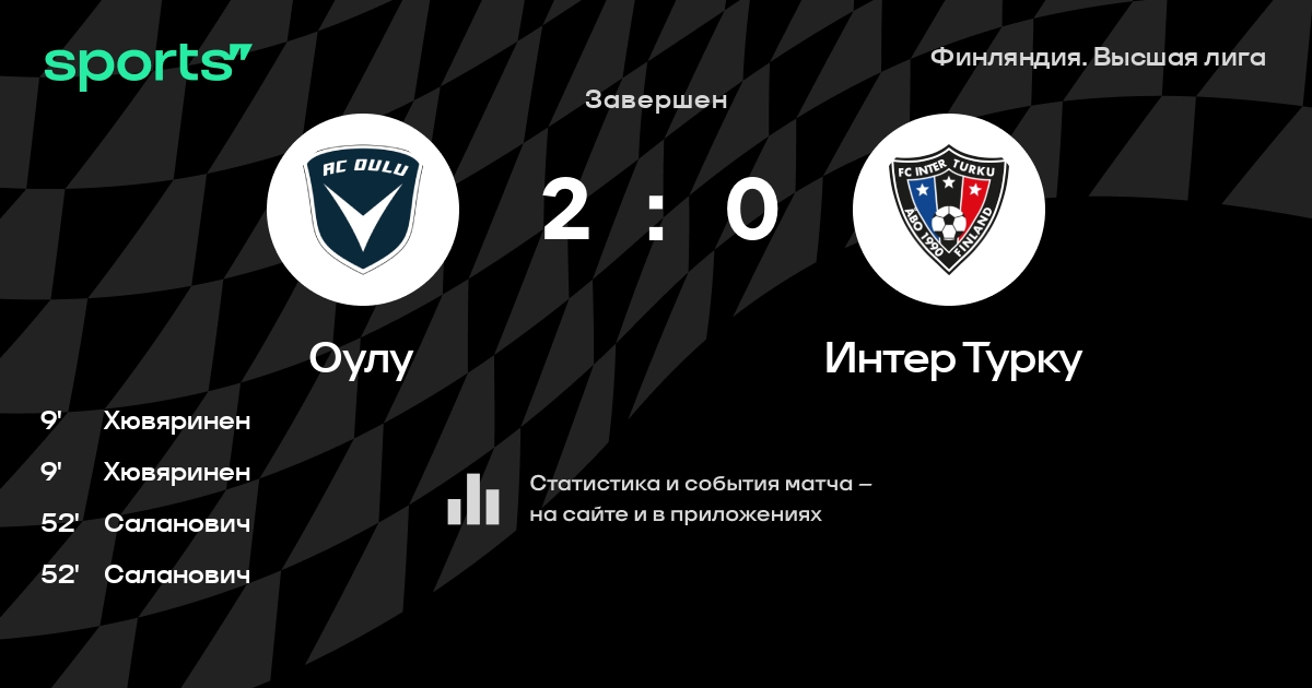 Оулу – Интер Турку: Оулу побеждает в 3 последних очных матчах в турнире «Финляндия. Высшая лига»