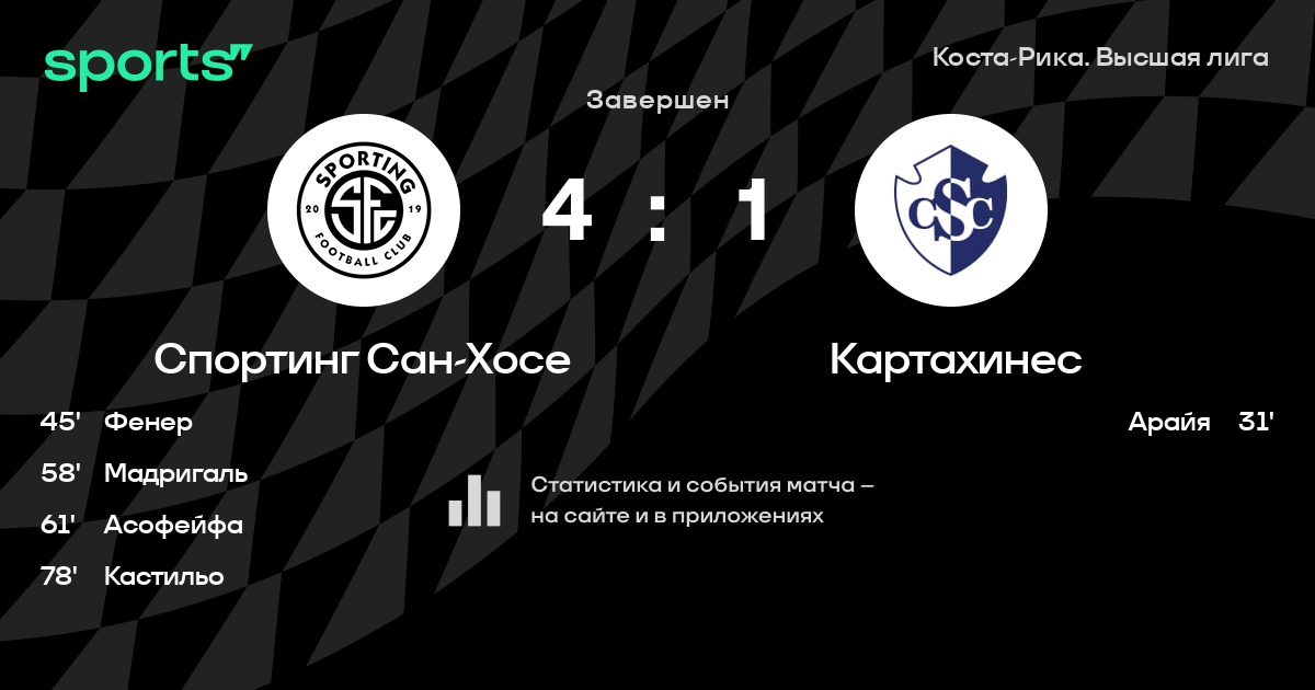 Трансляция Спортинг Сан-Хосе - Картахинес