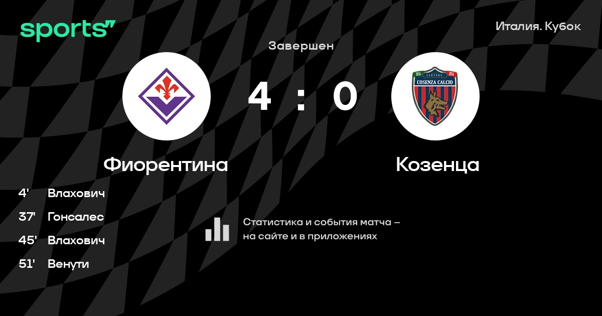 В последних 5 играх Фиорентина пропускает в среднем 0.40 гола за игру