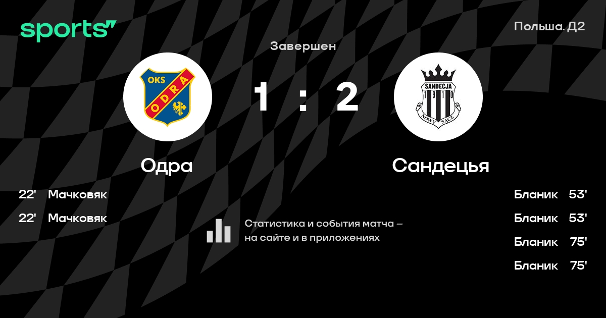 Одра – Сандецья: Сандецья не проигрывает в 6 из 8 последних матчей против этого соперника в турнире «Польша. Д2»