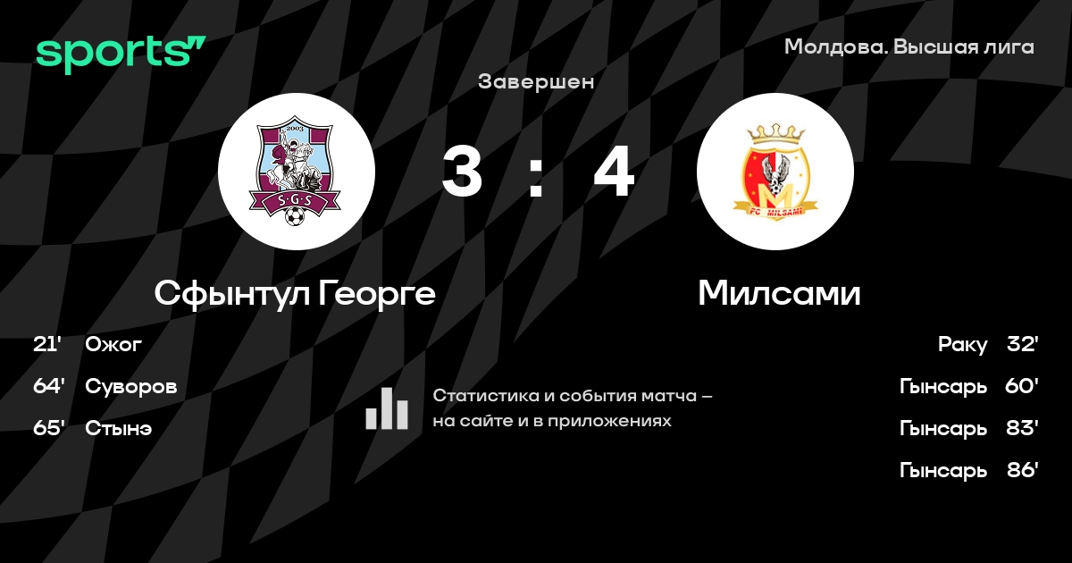 Сфынтул Георге – Милсами: Сфынтул Георге забивает в 5 последних матчах против этого соперника