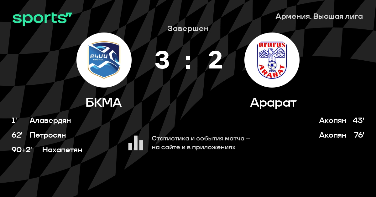Арарат побеждает в 3 последних матчах в гостях в турнире «Армения. Высшая лига»