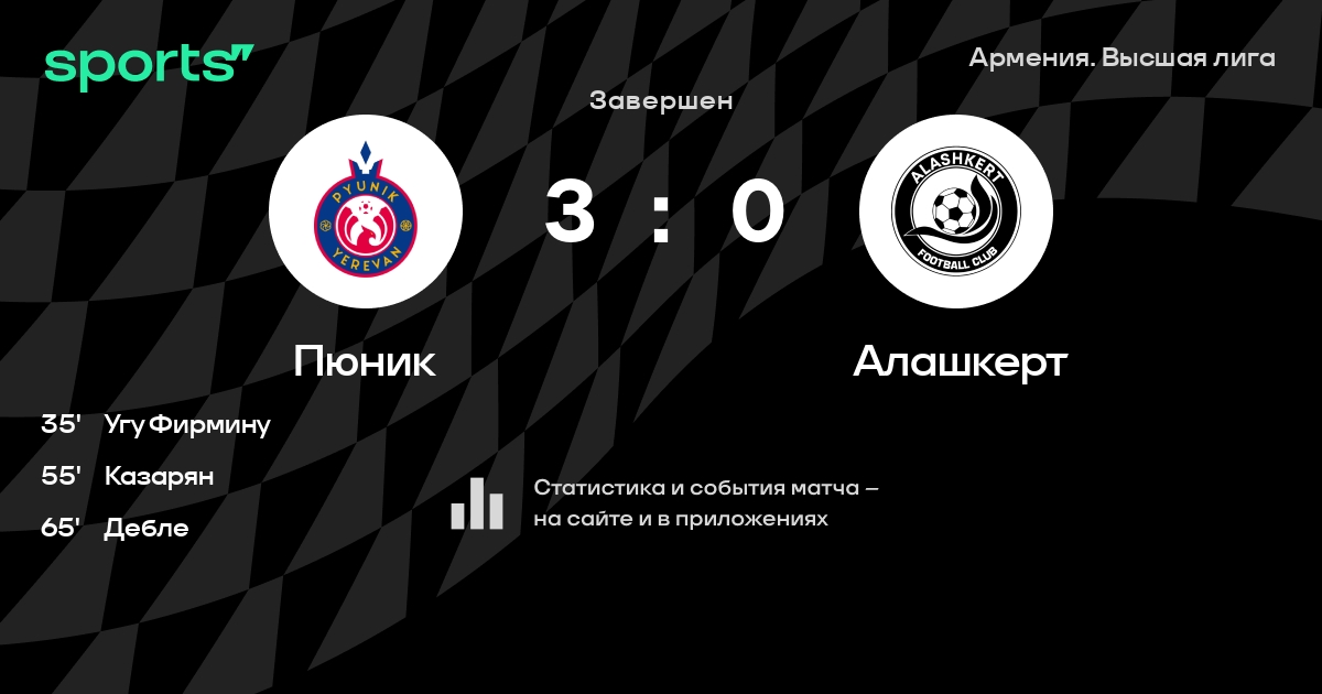 Пюник – Алашкерт: Алашкерт забивает в 4 последних матчах против этого соперника