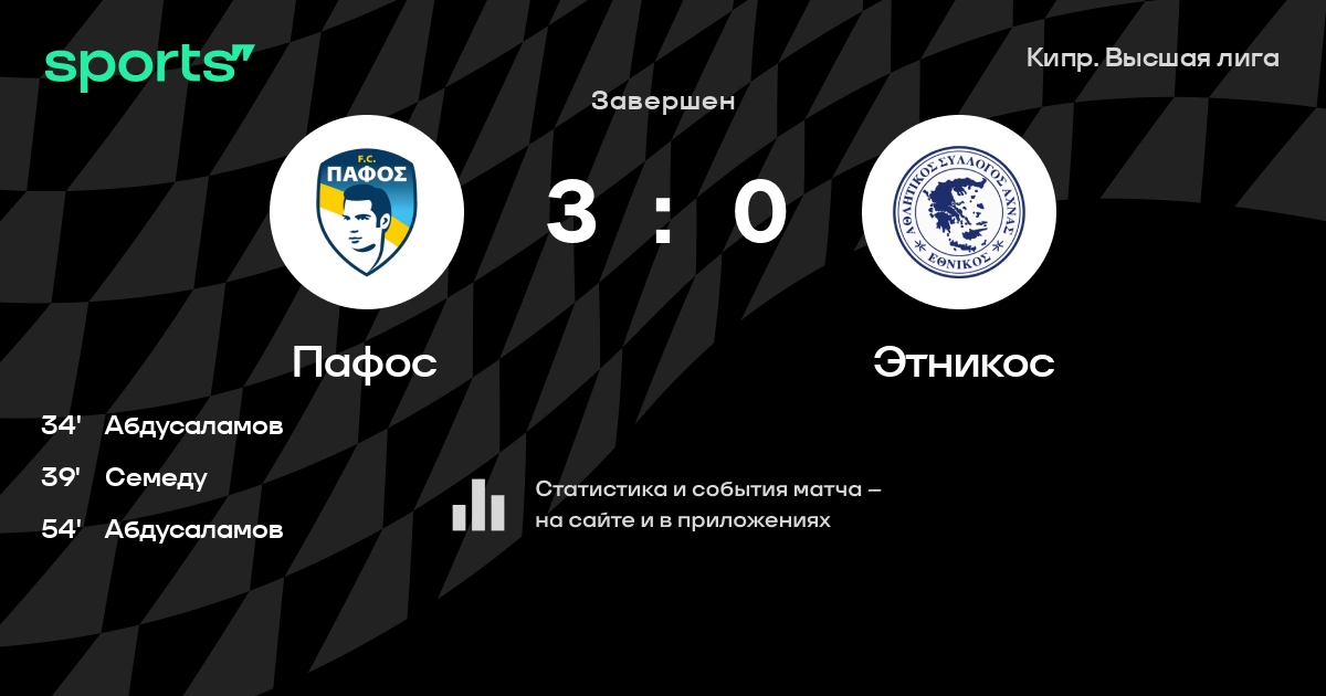 Пафос – Этникос: Пафос не проигрывает в 5 из 6 последних матчей против этого соперника дома