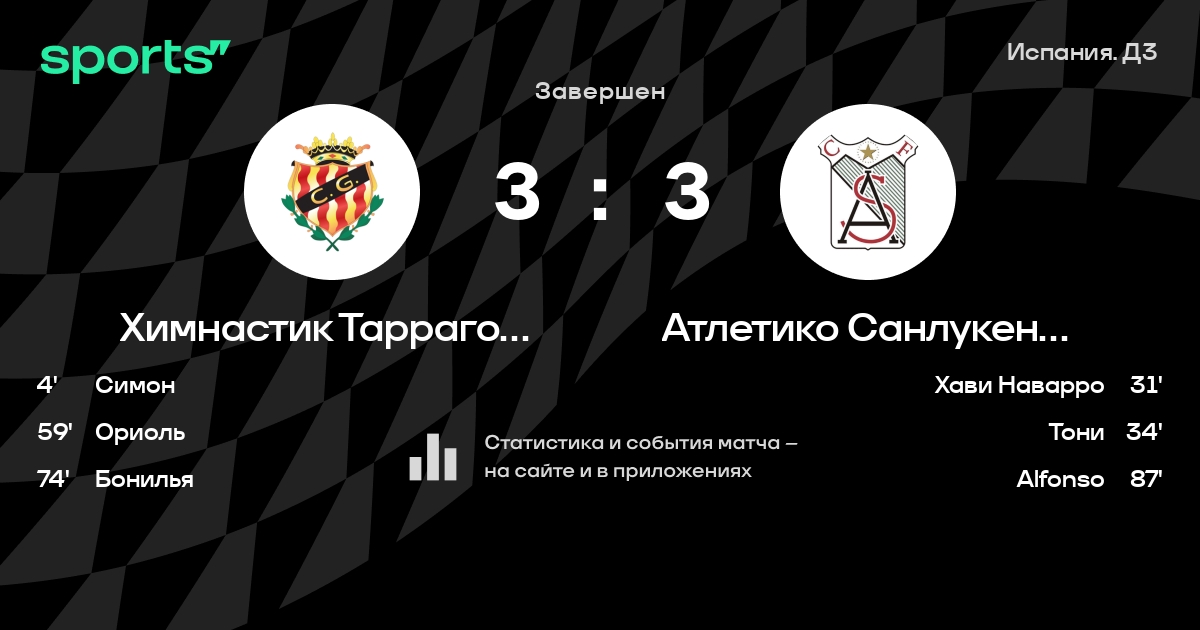 Трансляция Химнастик Таррагона - Атлетико Санлукеньо