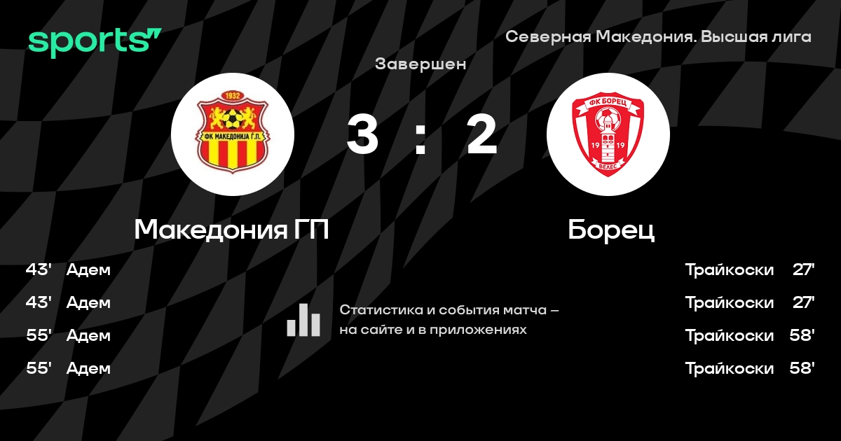 Рнич - Раджен, Eftimov, Янкулов - Nikolovski, Gjorgjieski, Zarate Fagiuoli, Трайкоски, Burim Aliev - Джорджевич, GjorgjievЗапасные: Jakimovski, Manasiev, Manasievski, Taleski, Trifunov, Poposki, Люма