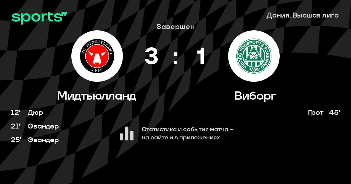 Мидтьюлланд не выигрывает в 5 последних матчах в турнире «Дания. Высшая лига»