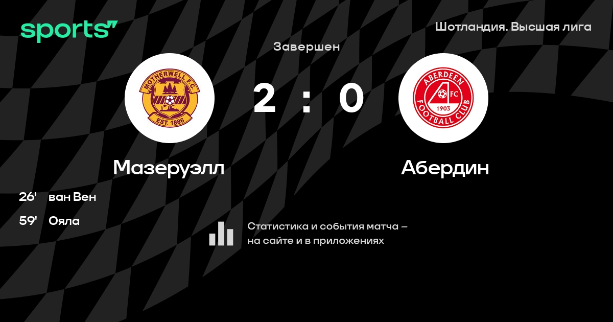 Мазеруэлл – Абердин: Абердин не проигрывает в 5 из 7 последних матчей против этого соперника в гостях в турнире «Шотландия. Высшая лига»