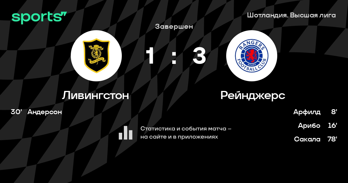 Ливингстон – Рейнджерс: Рейнджерс не пропускает в 9 последних матчах против этого соперника