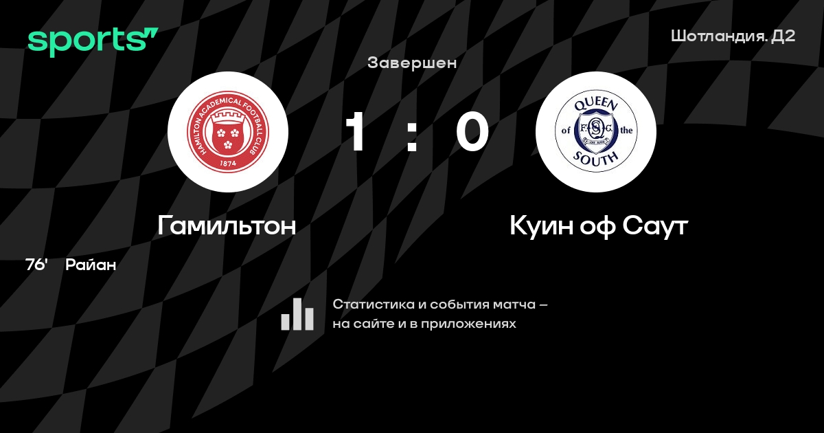 Гамильтон – Куин оф Саут: Гамильтон не проигрывает в 5 последних матчах против этого соперника