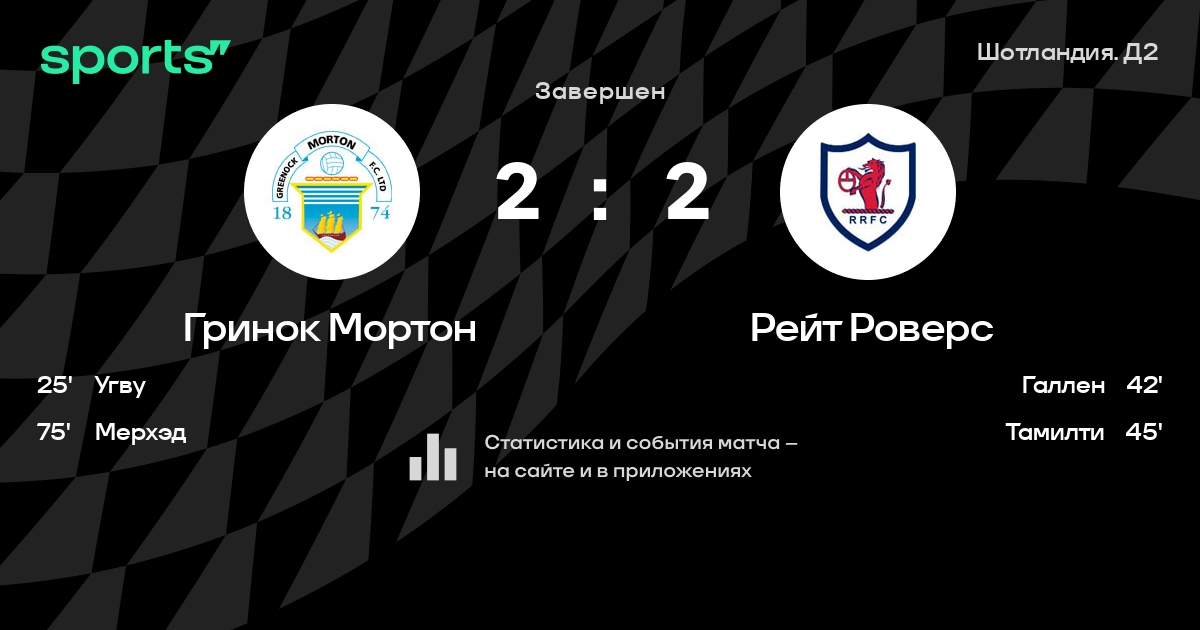 Гринок Мортон – Рейт Роверс: Рейт Роверс побеждает в 6 последних очных матчах