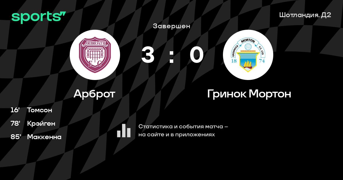 Арброт – Гринок Мортон: Арброт не проигрывает в 7 последних матчах против этого соперника