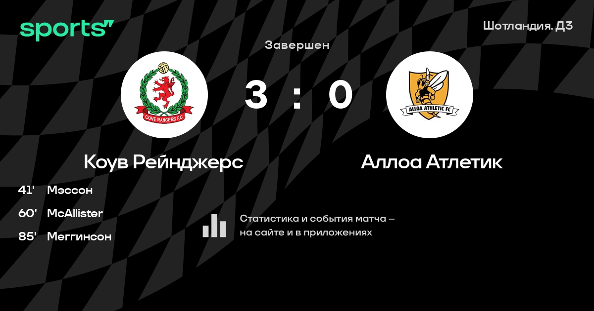 Коув Рейнджерс – Аллоа Атлетик: Аллоа Атлетик забивает в 3 последних матчах против этого соперника