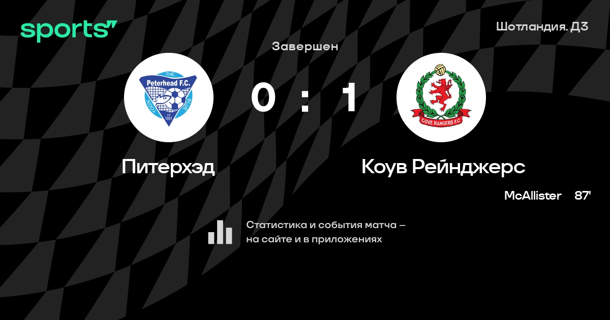 Питерхэд – Коув Рейнджерс: Коув Рейнджерс забивает в 6 последних матчах против этого соперника