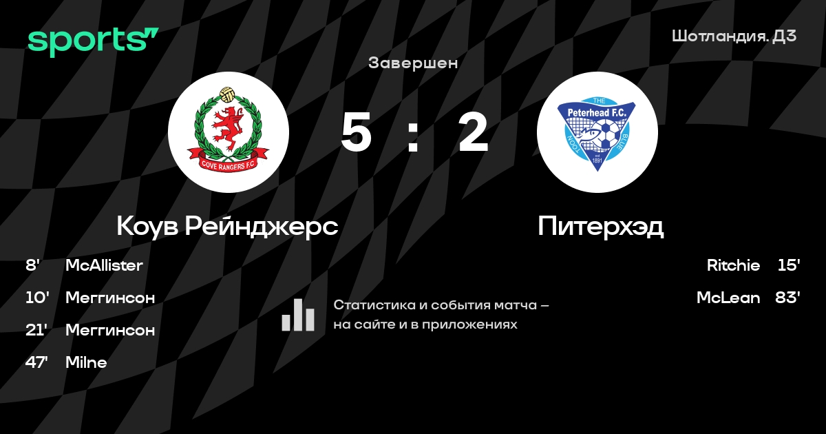 Коув Рейнджерс – Питерхэд: Коув Рейнджерс забивает в 7 последних матчах против этого соперника