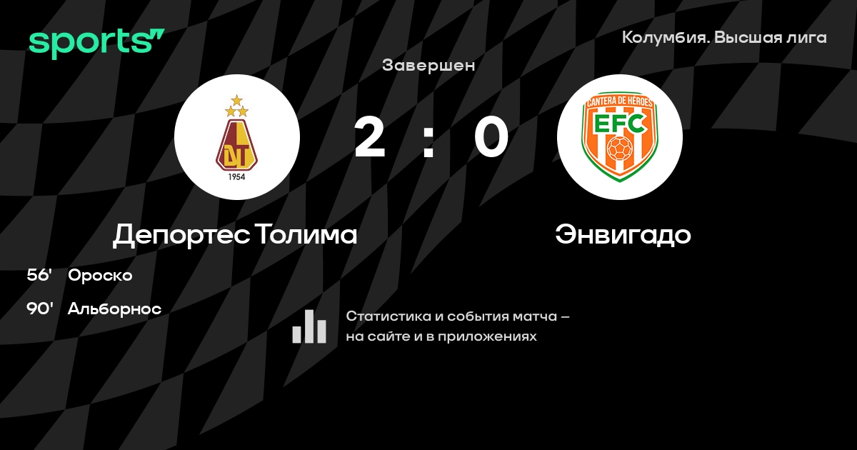 Депортес Толима – Энвигадо: Депортес Толима не проигрывает в 5 из 7 последних матчей против этого соперника