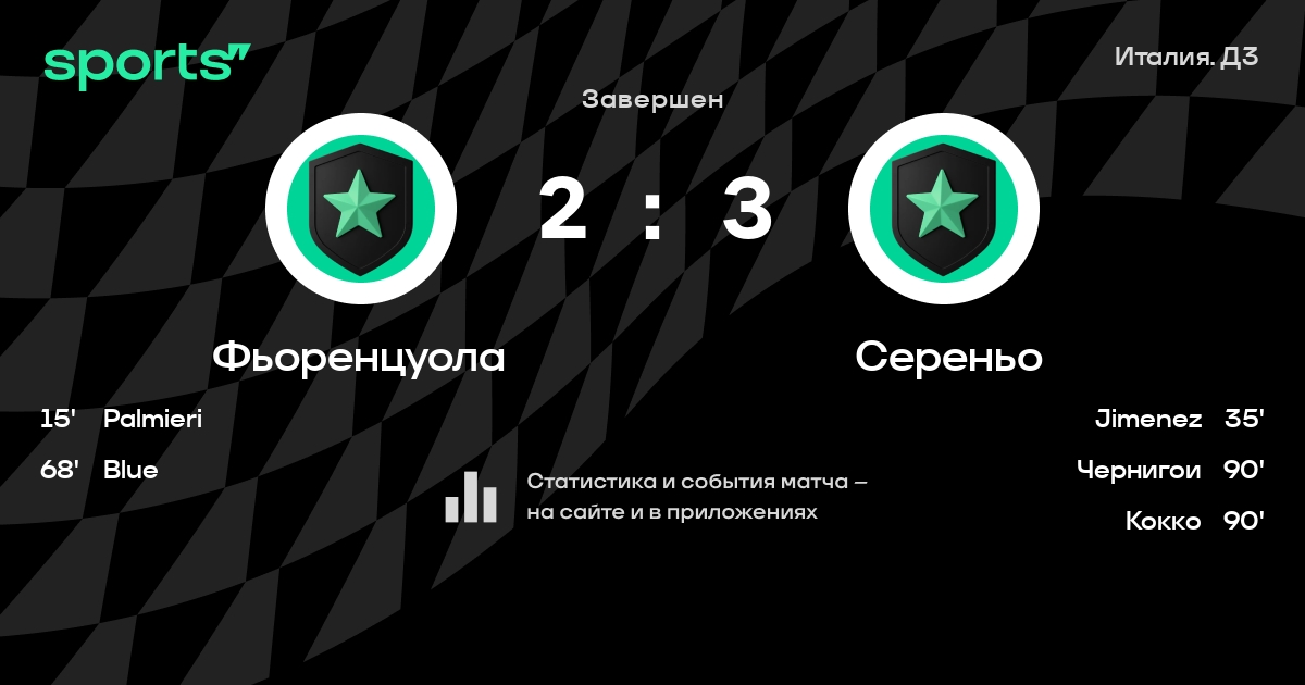 Фьоренцуола – Сереньо: Сереньо забивает в 3 последних матчах против этого соперника