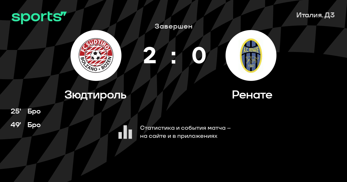Зюдтироль – Ренате: Зюдтироль не пропускает в 0 из 7 последних матчей против этого соперника