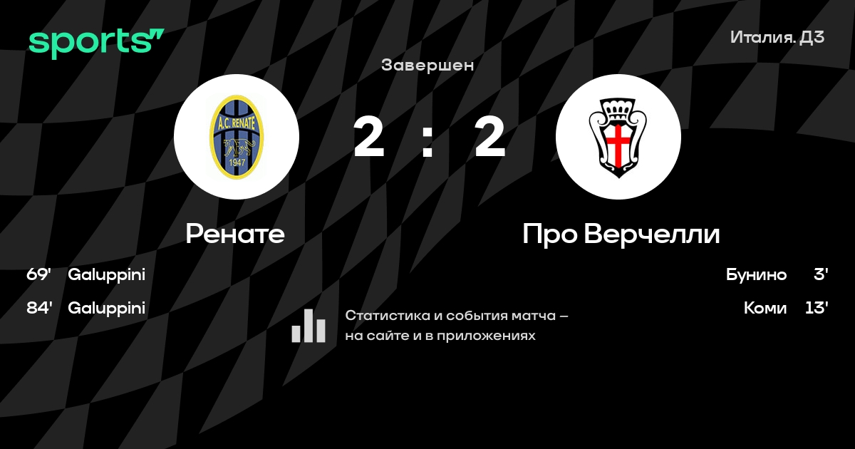 Ренате – Про Верчелли: Про Верчелли не проигрывает в 5 из 6 последних матчей против этого соперника