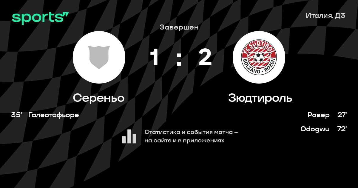 Полуцци - Де Коль, Davì, Винето, Курто, Fabbri - Москати, Fink - Фишналлер, Odogwu, РоверЗапасные: Мели, Marano, Sinn, Маломо, Zandonatti, Бро, Casiraghi, Канделлоне, Вольтан