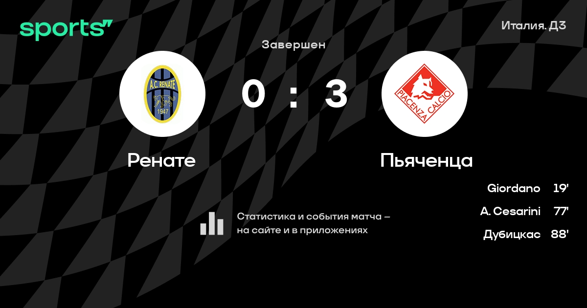 Ренате – Пьяченца: Ренате забивает в 3 последних матчах против этого соперника