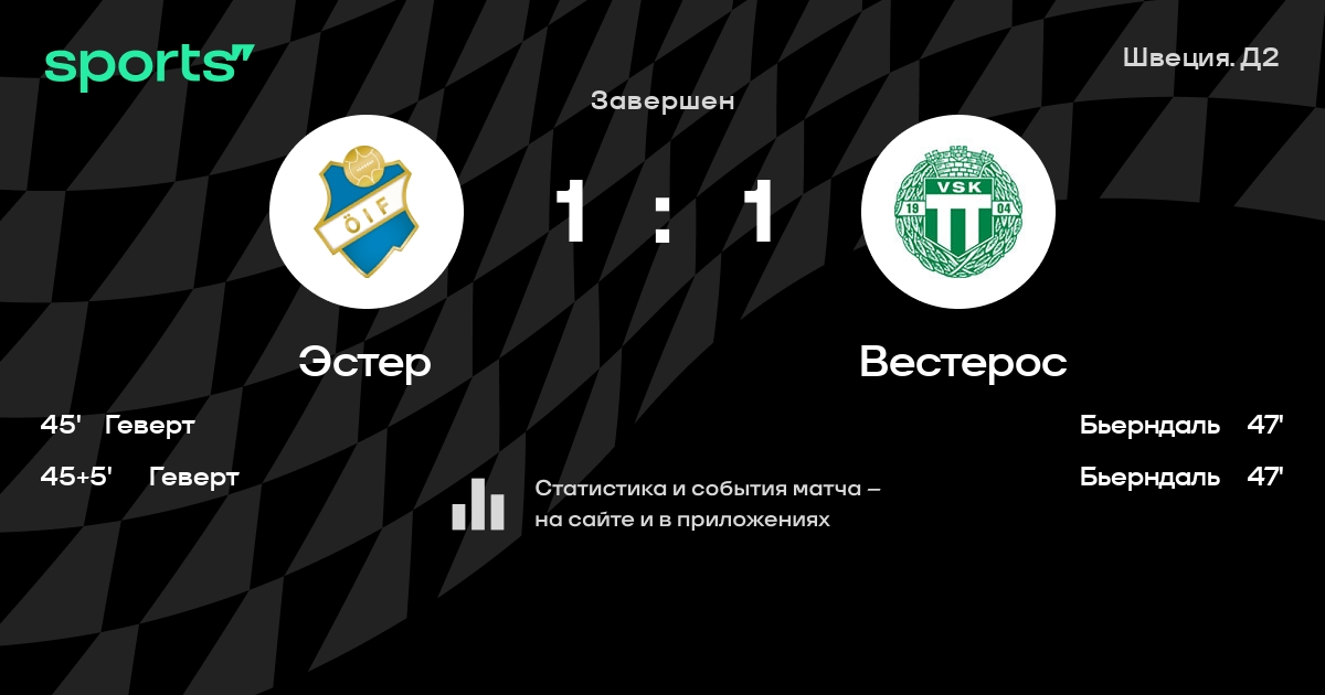 Вестерос играет вничью в 4 последних очных встречах в гостях в турнире «Швеция. Д2»