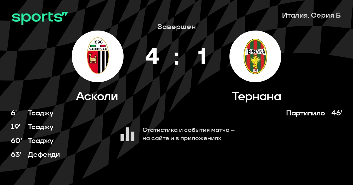 Асколи – Тернана: Тернана забивает в 4 последних матчах против этого соперника