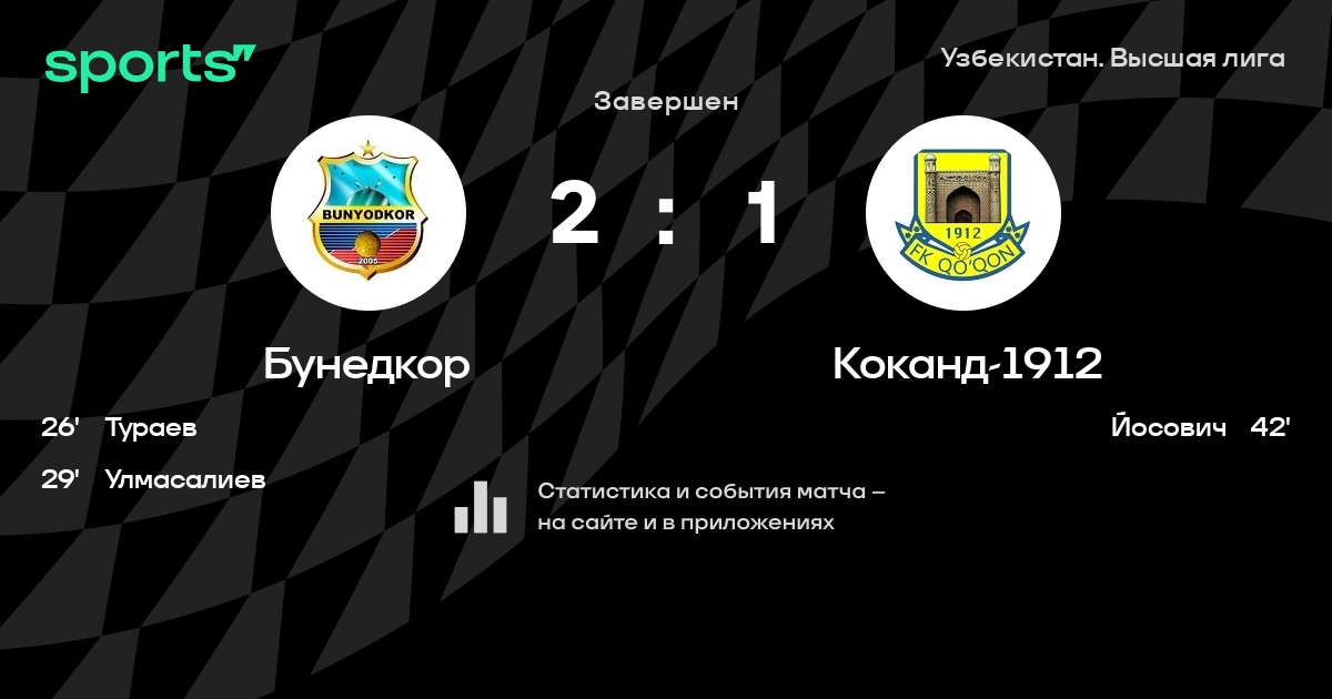 Бунедкор – Коканд-1912: Бунедкор не проигрывает в 5 из 6 последних матчей против этого соперника дома