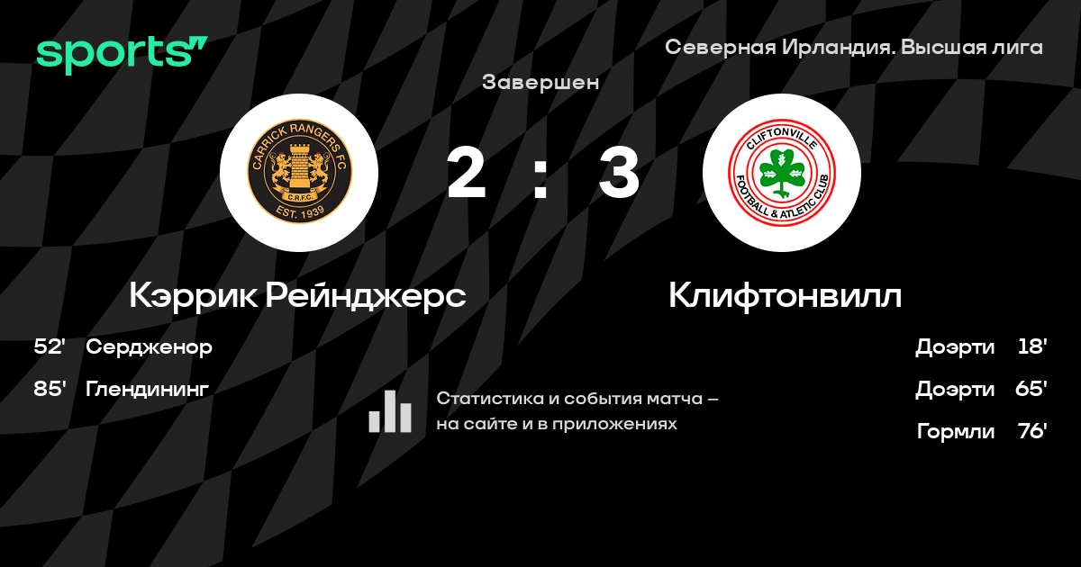 Кэррик Рейнджерс - Клифтонвилл: положение в турнире