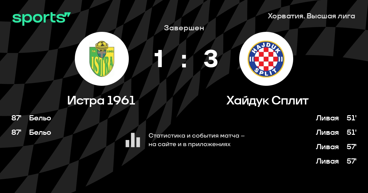 | 2 | Хайдук Сплит | 36 | 21 | 9 | 6 | 64 | 31 | +33 | 72 | ||