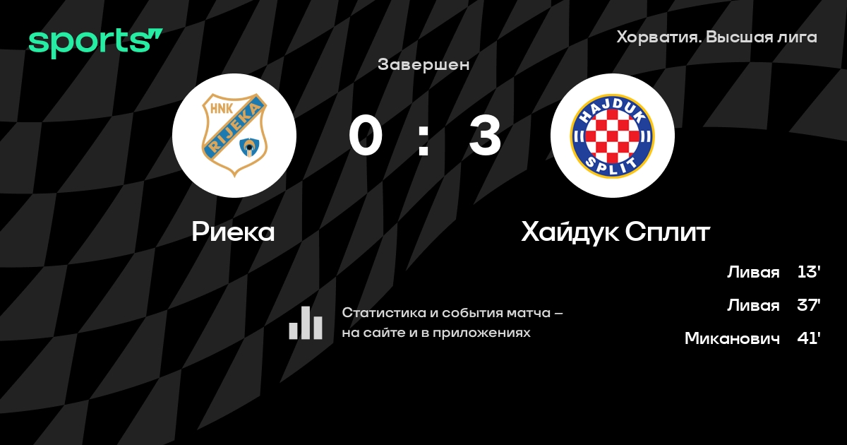 Риека – Хайдук Сплит: Хайдук Сплит побеждает в 3 последних очных матчах в гостях