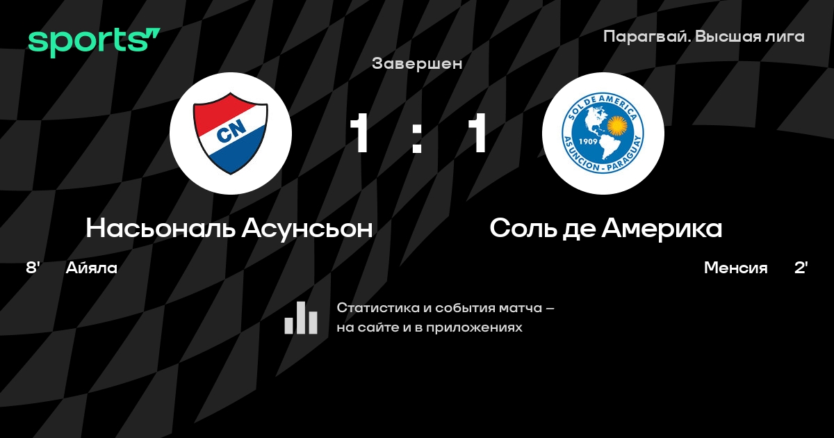 Насьональ Асунсьон – Соль де Америка: Соль де Америка забивает в 5 из 7 последних матчей против этого соперника