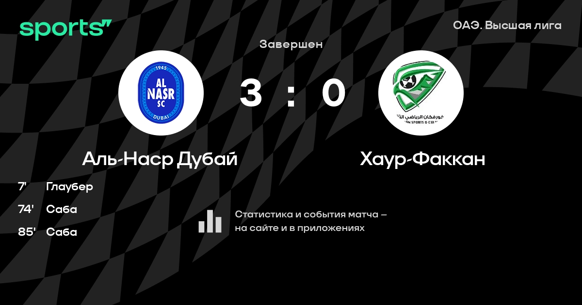 Аль-Наср Дубай – Хаур-Факкан: Аль-Наср Дубай не пропускает в 0 из 7 последних матчей против этого соперника