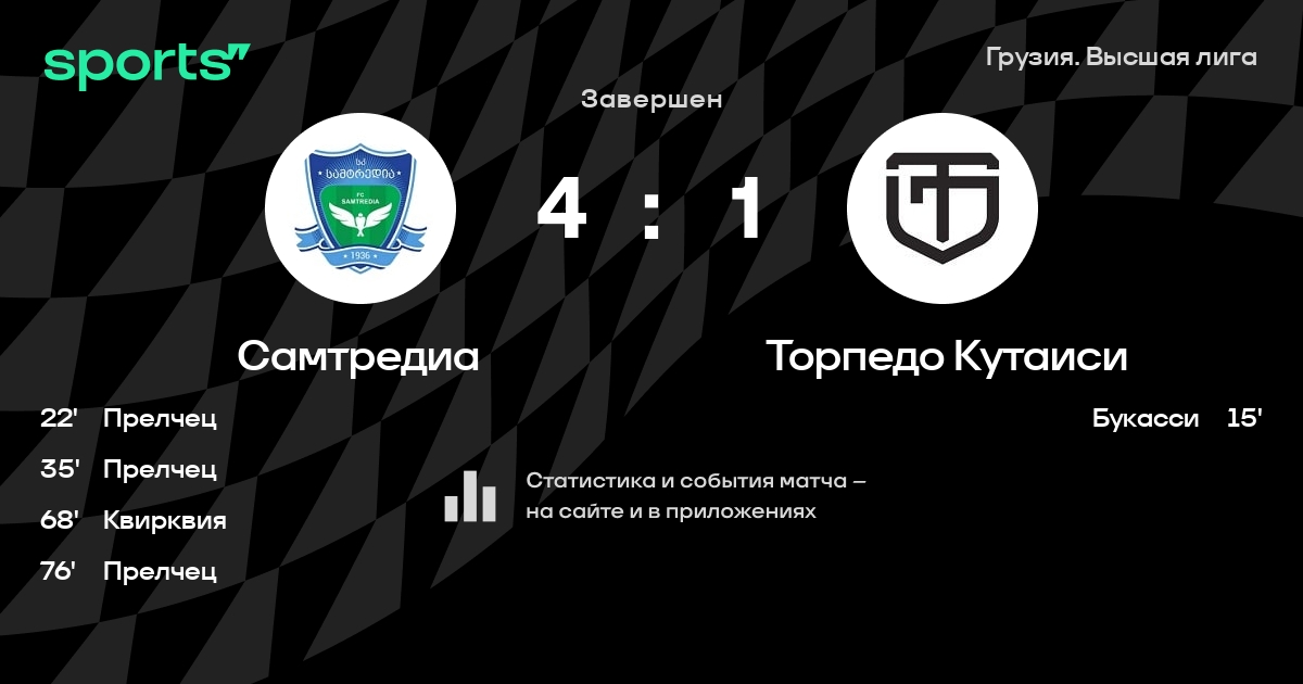 Самтредиа – Торпедо Кутаиси: Торпедо Кутаиси не проигрывает в 13 из 15 последних матчей против этого соперника