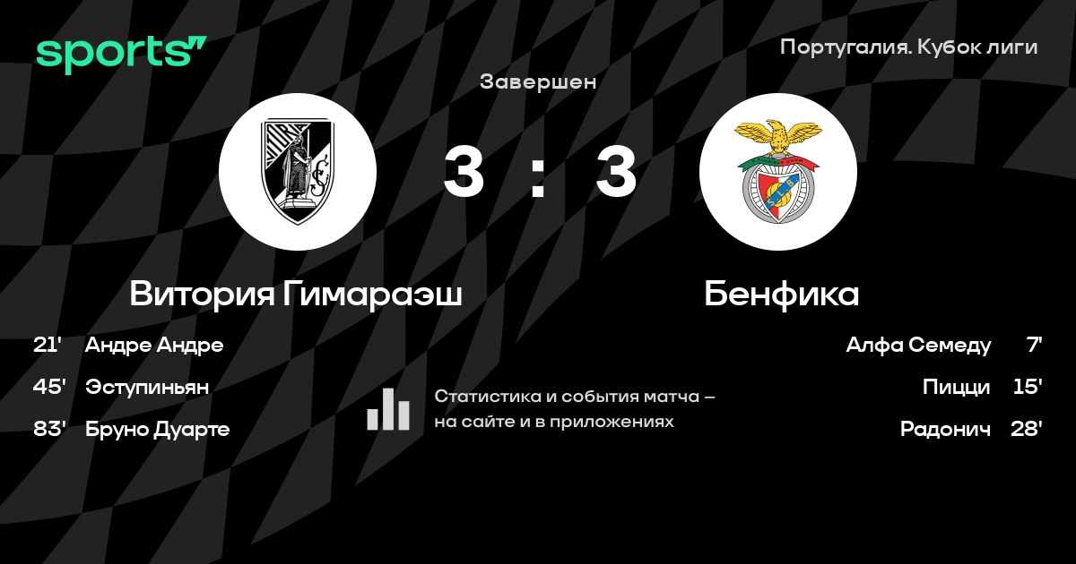Витория Гимараэш – Бенфика: Бенфика забивает в 5 из 7 последних матчей против этого соперника